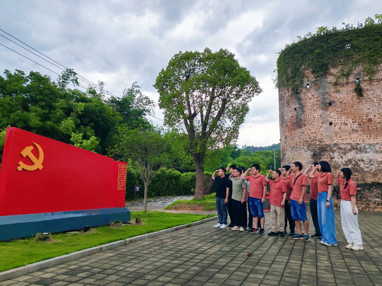 參加活動的黨員同志們一同參觀了廣東省委機關舊址——紅圍,通過觀看宣傳欄里留下的珍貴歷史照片和文字記載的歷史變遷,了解這座近200年歷史的圍樓,歷經歲月的滄桑與戰火的洗禮至今仍然屹立不倒,感受在那血雨腥風的歲月里,中共廣東省委從這里發出的紅色電波,保持著與黨中央的密切聯系,指揮南方地區的抗日戰爭工作。隨后,大家在紅圍前,面對黨旗莊嚴地舉起右拳重溫了入黨誓詞,緬懷老一輩革命先烈的崢嶸歲月,感悟先輩不怕犧牲的英雄事跡,激發黨員奮斗精神和干事創業動力。